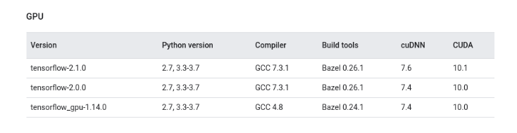 I have noticed that some newer TensorFlow versions are incompatible with older CUDA and cuDNN versions. Does an overview of the compatible versions or even a list of officially tested combinations ...